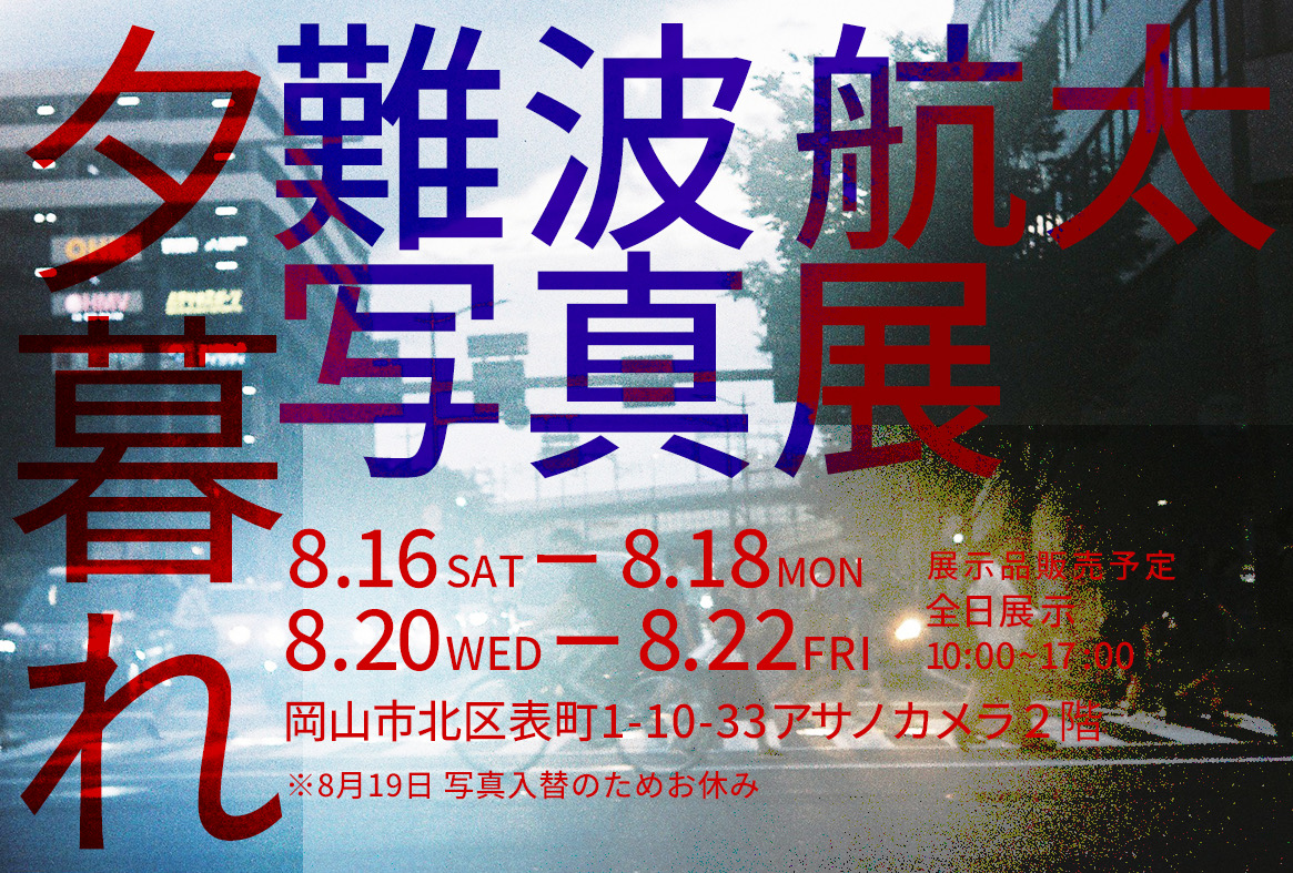 岡山出身の写真家・難波航太が、2024年から撮り続けた「夕暮れ」の作品約30点を展示します。難波氏は第73回朝日広告賞「一般公募・新聞広告の部」において、彩きもの学院の課題作品でグランプリを受賞するなど、広告や雑誌、建築撮影など幅広い分野で活躍中。2025年8月1日に開設した自身の拠点「Atelier remin(アトリエ レミン)」を新たな創作の発信地として、より地域に根ざした写真活動を本格化していく。