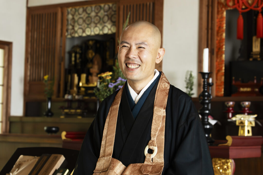 1986年生まれ、岡山県赤磐市出身。バンド活動を経て仏門に入り、臨済宗正眼寺で禅を学び、梅林寺専門道場で6年間修行。2024年、安禅寺第13世住職に就任。茶道裏千家専任講師、岡山県認定養育里親。寺の本質を追求しつつ、型に囚われず、坐禅やヨガ、地域イベントなど多彩な試みに挑戦する若き禅僧。