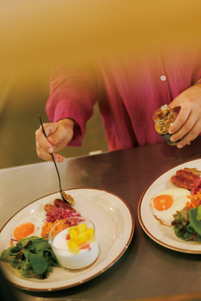 普段、私は食に関する投稿を中心に、飲食店のメニュー開発やコーディネート、食器選び、あるいは企業のホームページのスタイリングなど“食を魅せる仕事”をしています。愛犬と散歩して、朝ごはんを用意して写真を撮る。これが私の日常です。学生時代、居酒屋でのアルバイトをきっかけに、店長のセンスあふれる盛り付けから「見た目で心が弾む料理」が食事の幸福感を左右することを知りました。まだSNSがなかった頃から自分の料理のスタイリングを写真に残し、Instagramを始めてからは見てくれる人が増え、嬉しさと楽しさは倍増しました。パン選びの基準は、「シンプルなものをひとつ」「見た目のかわいいものをひとつ」。朝はほぼ毎日パン派で、パンとコーヒー、卵、野菜、ハムやソーセージがそろえば、私の一日がスイッチ・オン。私にとって、パンは、ないと困る〈日々の幸せ〉。朝のスイッチであり、幸福のひと皿を完成させてくれる〈顔〉なのです。