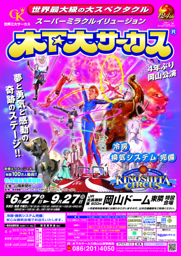 6月27日〜9月27日 山陽新聞社主催 木下大サーカス岡山公演開催